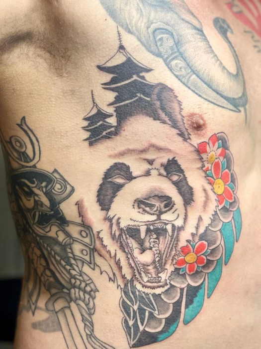 Ein Stil, der in Deutschland entwickelt wurde und oft eine Mischung aus Realismus, Schriftzügen, geometrischen Formen und kräftigen roten Akzenten enthält. Diese Tattoos wirken sehr künstlerisch und dynamisch.